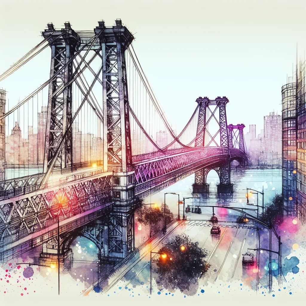 The Williamsburg Bridge, officially known as the Williamsburg Bridge, is a double-deck suspension bridge spanning the East River in New York City. It connects the neighborhoods of Williamsburg in Brooklyn with the Lower East Side of Manhattan. The bridge is one of the city's most iconic landmarks and a vital transportation artery, accommodating both vehicular and pedestrian traffic. The upper deck carries vehicular traffic, while the lower deck is used by subway trains and pedestrians. The bridge is notable for its impressive architectural design, featuring two massive towers that anchor the suspension cables. It was completed in 1903 and has since undergone several renovations to maintain its structural integrity and functionality. The Williamsburg Bridge offers stunning views of the Manhattan skyline and the East River, making it a popular spot for sightseers and photographers. It is also a significant cultural symbol, often featured in films, television shows, and artworks that depict the vibrant and diverse character of New York City. The bridge's historical significance and architectural beauty make it a must-visit destination for tourists and locals alike.