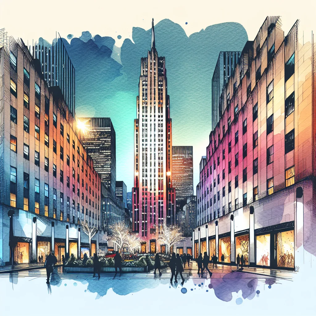 Das Rockefeller Center ist ein ikonisches Wahrzeichen im Herzen von Manhattan, New York City, und gilt als eines der bedeutendsten architektonischen Projekte des 20. Jahrhunderts. Es erstreckt sich über einen Block zwischen der 48. und 51. Straße und der Fifth und Sixth Avenue und umfasst eine Vielzahl von Gebäuden, die durch unterirdische Passagen miteinander verbunden sind. Das Zentrum wurde in den 1930er Jahren erbaut und ist nach dem amerikanischen Industriellen John D. Rockefeller Jr. benannt, der das Projekt initiiert und finanziert hat.